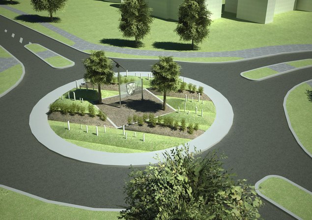 Der Verkehrskreisel Otto-Hahn-Straße/Neuschloßstraße/Gewerbestraße soll nach seiner baulichen Fertigstellung gärtnerisch gestaltet werden.